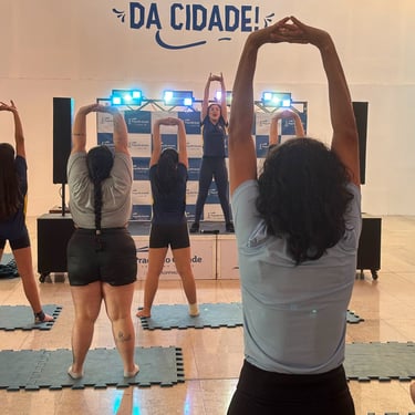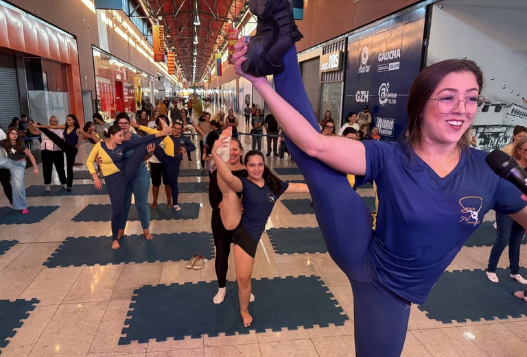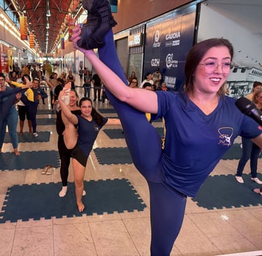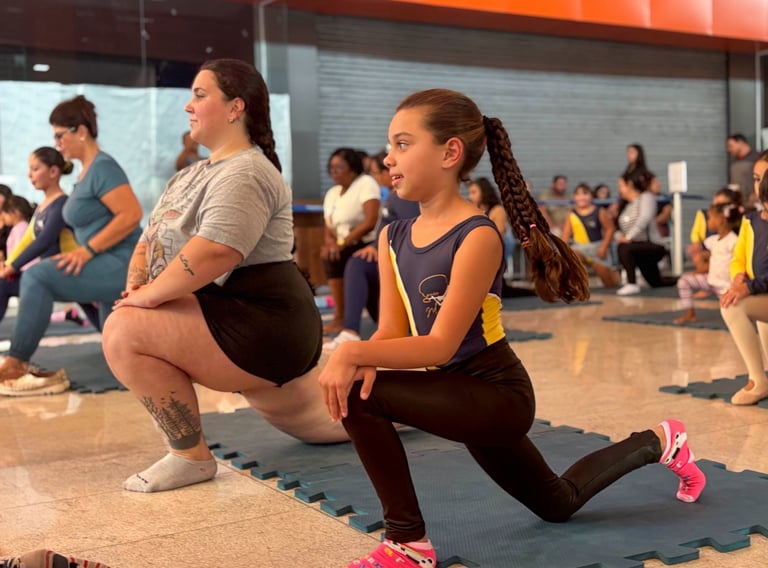 A querida Prof Jennefer Gham ministrou um aulão aberto preparado especialmente para mães e filhos. Ela transformou os corredores do shopping em um grande palco de alegria. Desde os primeiros instantes, a energia contagiante tomou conta do ambiente. Mães, com seus olhares cúmplices e orgulhosos, acompanhavam seus pequenos em cada movimento. E os filhos, ah, os filhos! Seus sorrisos espontâneos e a entrega total às atividades eram a prova viva de que estávamos no caminho certo. Vimos alongamentos que se transformavam em abraços e acrobacias que arrancavam gargalhadas.
