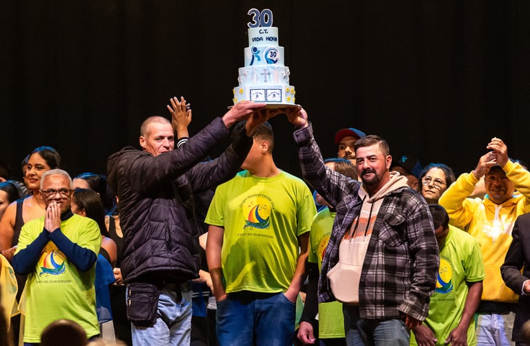 A noite da última quinta-feira, 22 de maio, foi marcada por um brilho especial para a família Sorriso Movimento. Nossos talentosos alunos tiveram a honra e a alegria de participar do espetáculo "RECOMEÇAR V - Um chamado a ser família", promovido pelo CT Vida Nova em comemoração aos 30 anos do projeto. Foi uma experiência que transcendeu o palco, tecendo uma noite repleta de significado profundo, histórias de superação e uma emoção que tocou a todos os presentes.