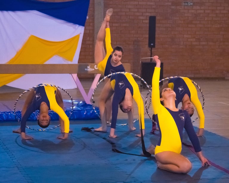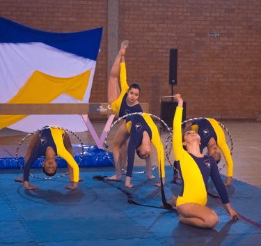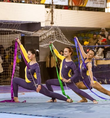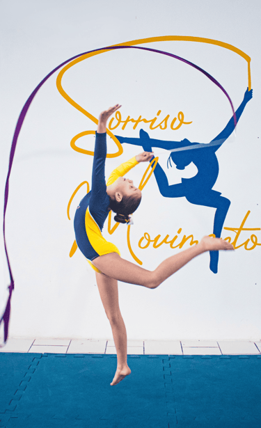 Aulas de Ginástica Rítmica com foco no desenvolvimento físico, emocional e artístico.